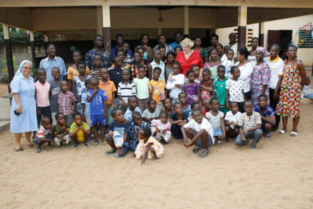 Bei Projektbesuchen der Vorstandsmitglieder in Togo gibt es immer ein Treffen mit den Patenkindern.